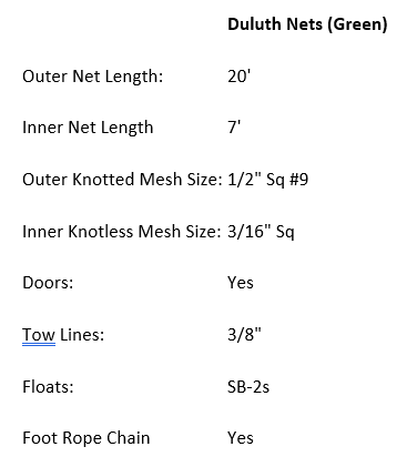 | 1018 | Sport | 1 | Barrier Net | 23′ x 23′ | 1″ | White | $100.00 | MB24-C5 | https://duluthfishnets.com/wp-lib/wp-content/uploads/tr8.jpg | ||