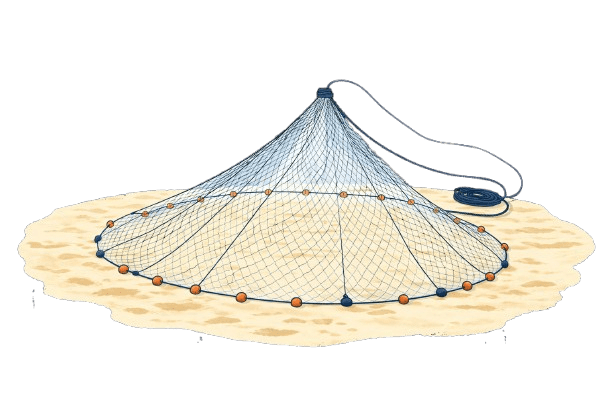 Duluth Nets stocks 3/8″, Monofilament Bait Cast Nets. These nets are complete and ready to use for catching minnows, shrimp, or any other type of baitfish.
