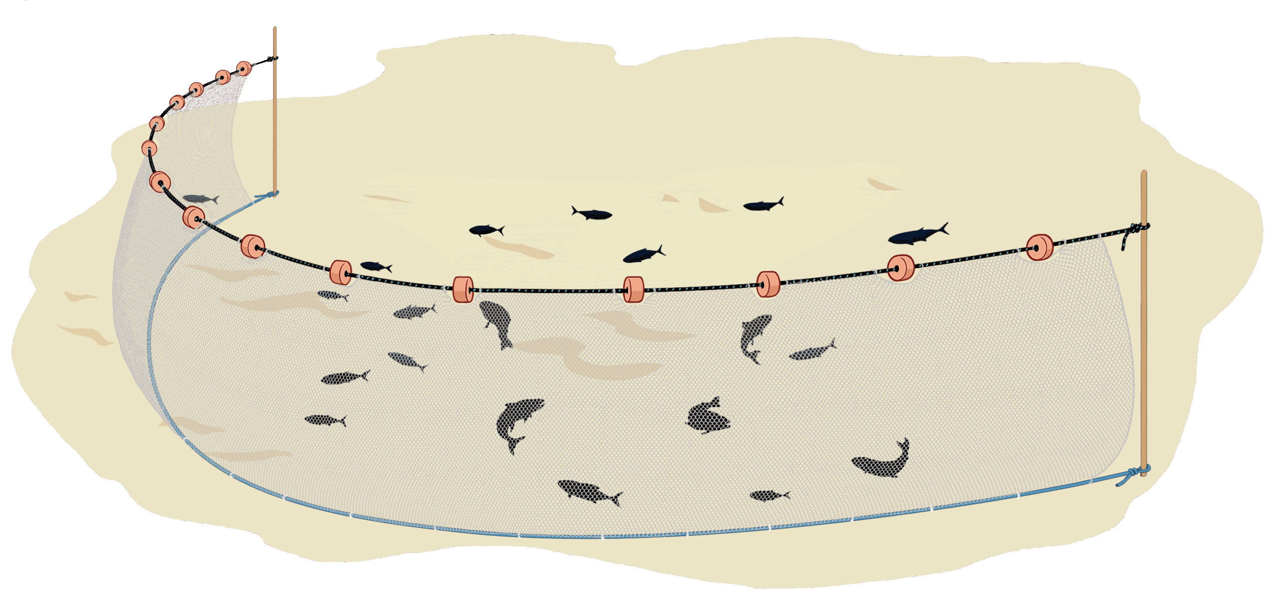 • Skirts to prevent fish burrowing underneath seine nets